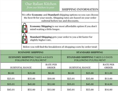 Your order may come in a few packages, but don’t worry—everything you picked is on its way! And you’ll only pay one flat shipping fee based on your order total. From our kitchen family to yours, thank you for shopping with Our Italian Kitchen!
